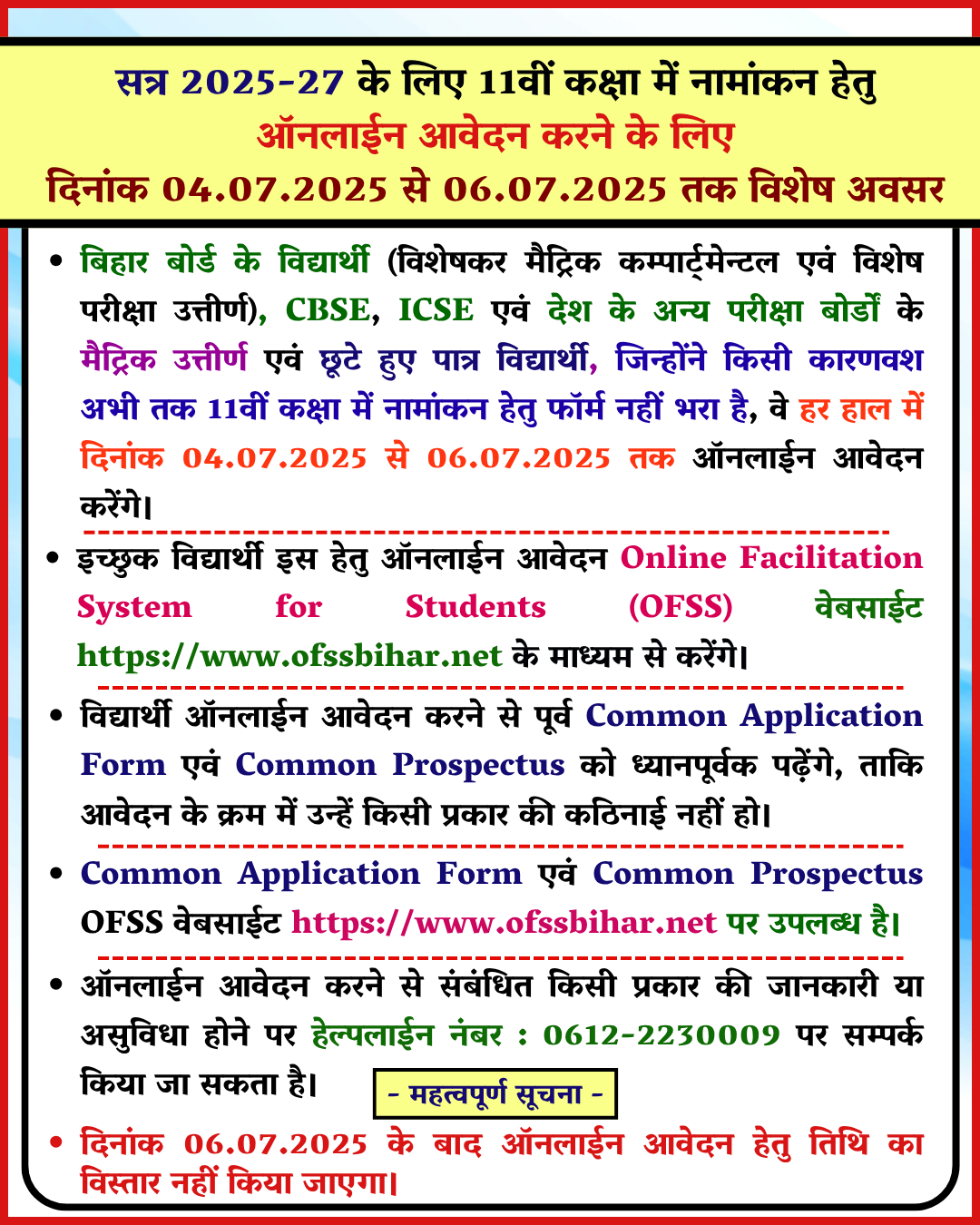 Bihar School Examination Board (BSEB)BSEB Common Application Form For Intermediate 11th Admission 2025Bihar OFSS 11th Admission 2025 : Short Details of Notificationwww.indiansarkari.com |