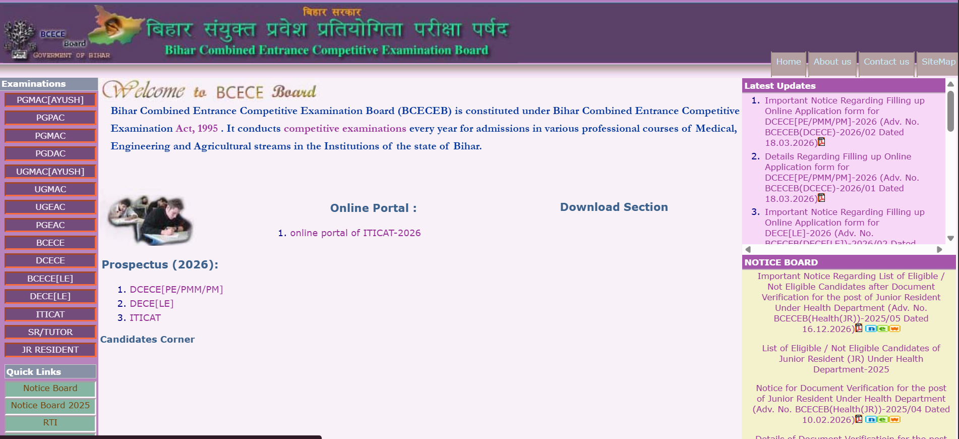 - Go to: https://bceceboard.bihar.gov.in
