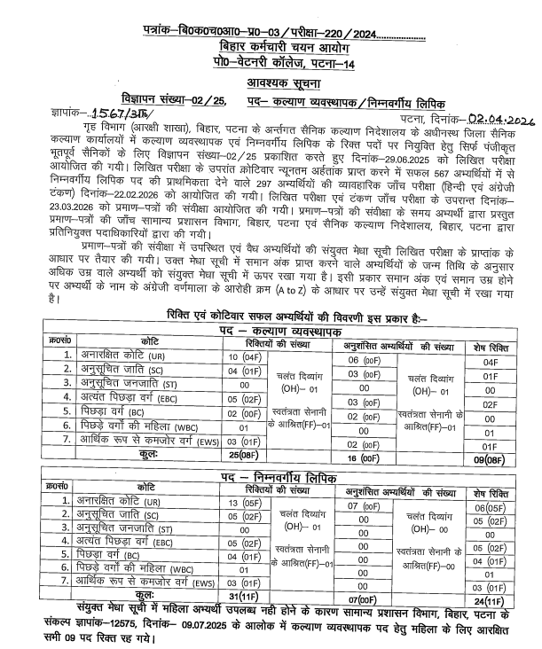 Important Download Link BSSC LDC & Welfare Organiser Final Result 2026