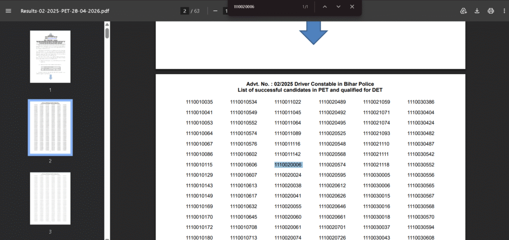 Click on the “Bihar Police Driver PET Result 2026” link (usually on the homepage).