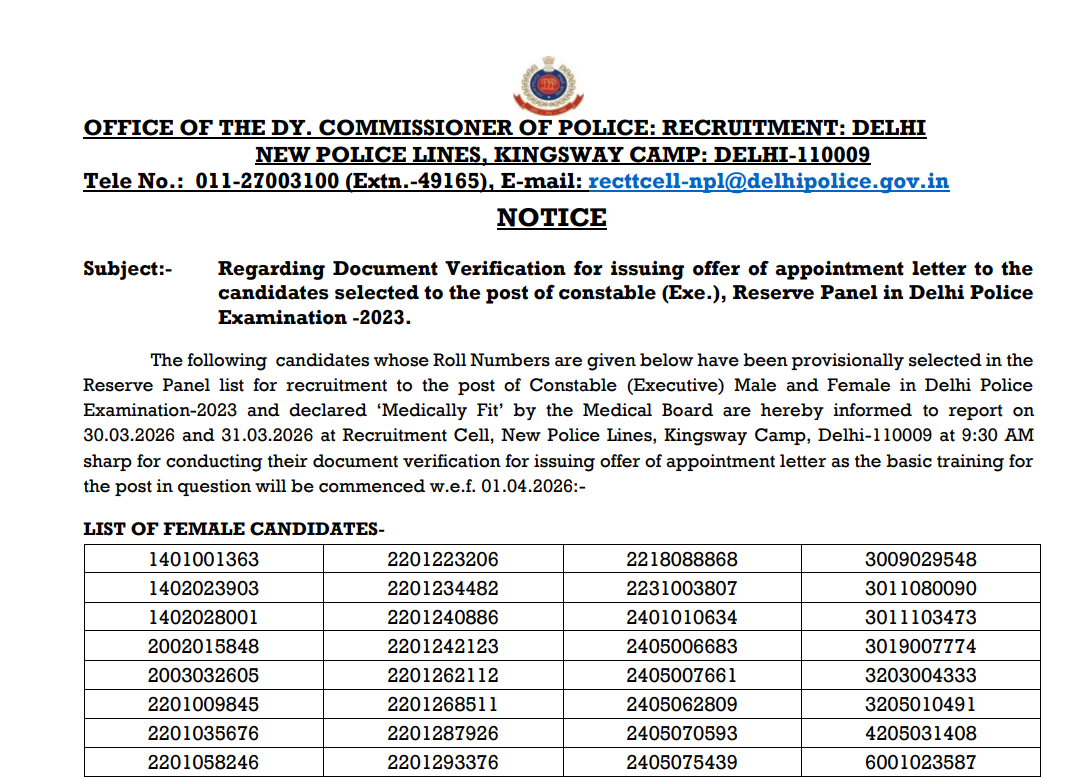 A: The Staff Selection Commission (SSC) has officially released the result for the Delhi Police Constable (Executive) Examination 2023 on 28th March 2026. Candidates who appeared for the exam held between November and December 2023 can now check their results on the official SSC website.