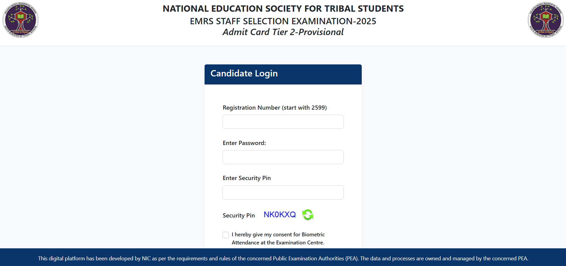 - You will be redirected to the Eklavya Model Residential Schools (EMRS) ESSE 2025 Admit Card download page.