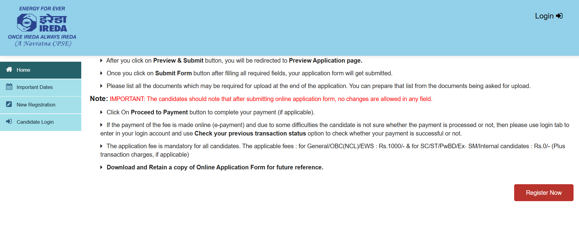 5. What is the application fee for IREDA Recruitment 2026?