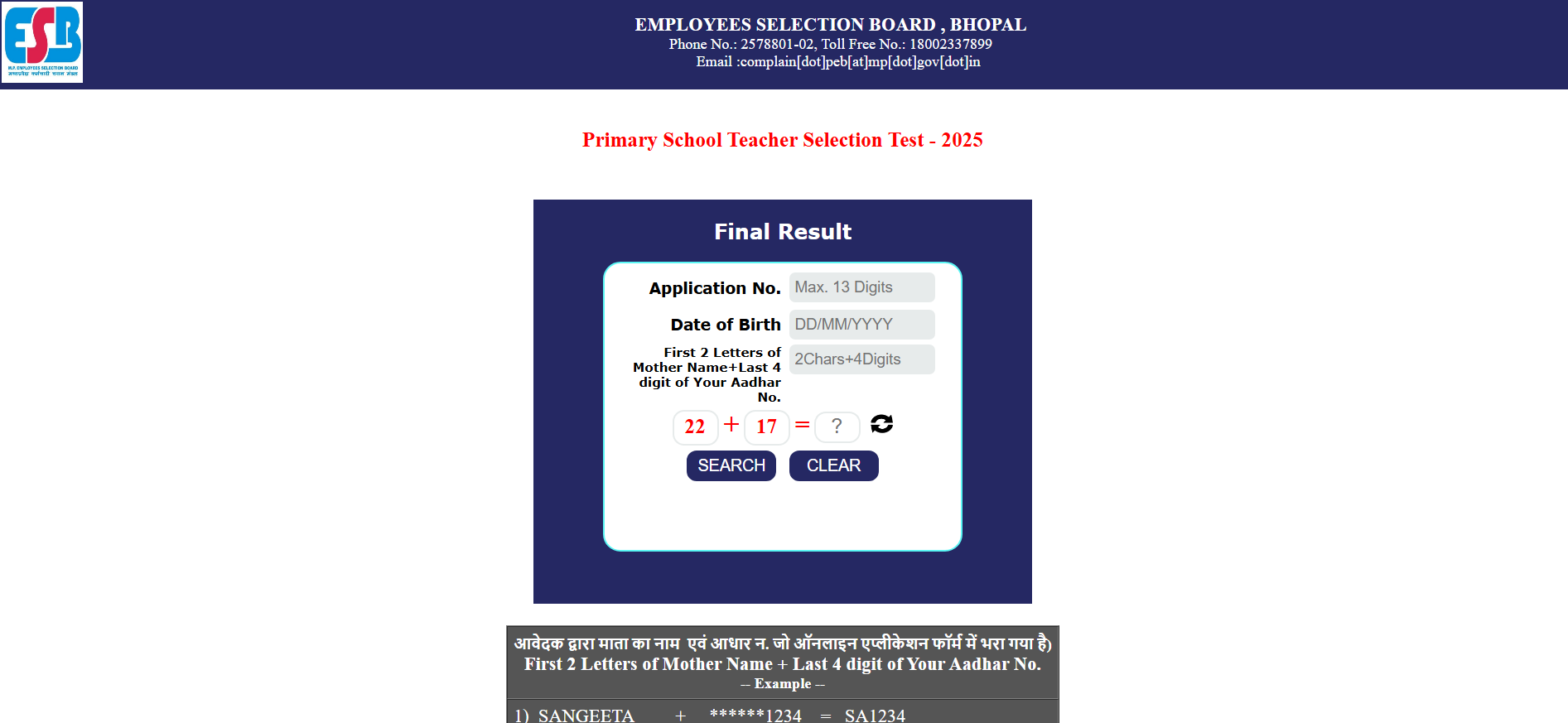 Madhya Pradesh Employee Selection Board (MPESB)MPESB Primary School Teacher PSTST Result 2026 |