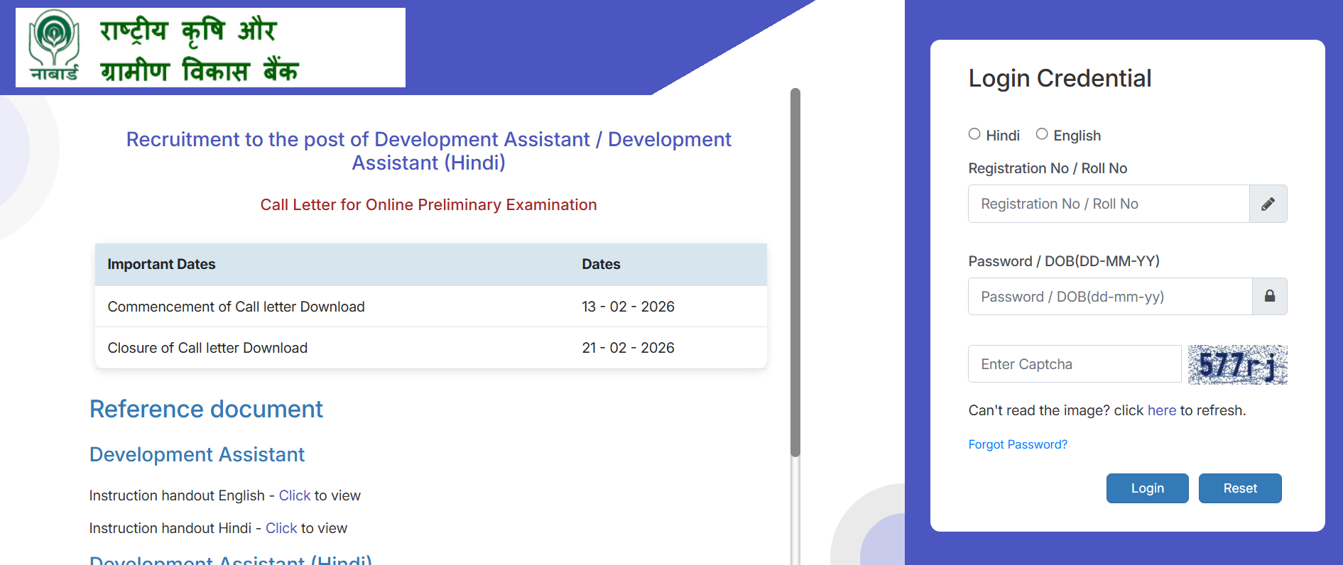 Q4. Where can I download the NABARD Development Assistant Admit Card 2026?