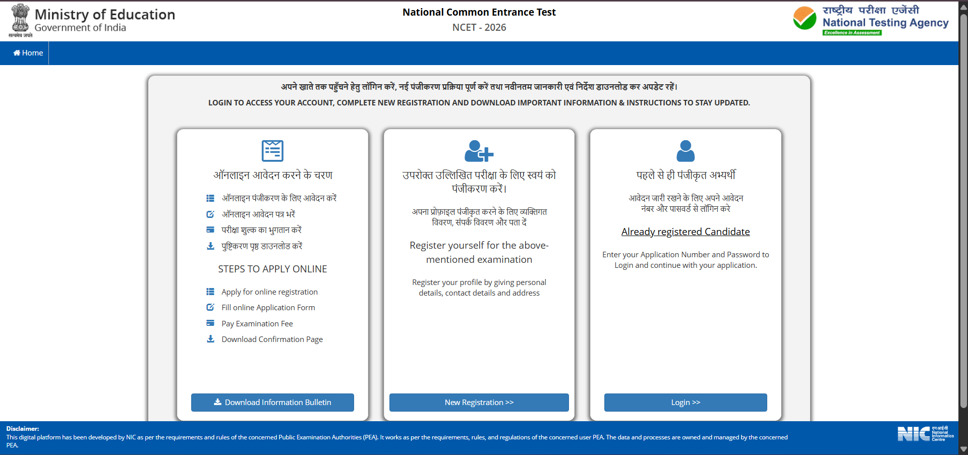 - Or, visit the official NTA NCET website to complete the online application process.
