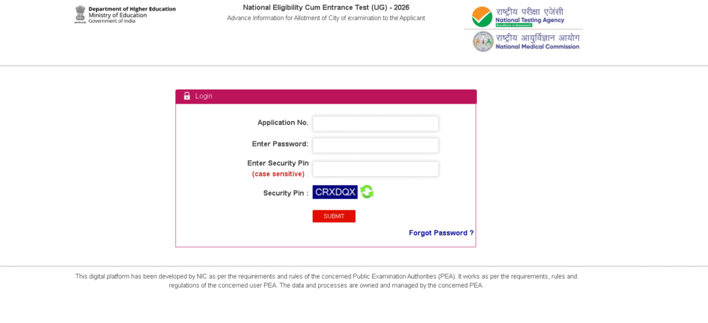 - Click on the “NEET UG 2026 Exam City Intimation Slip” link.