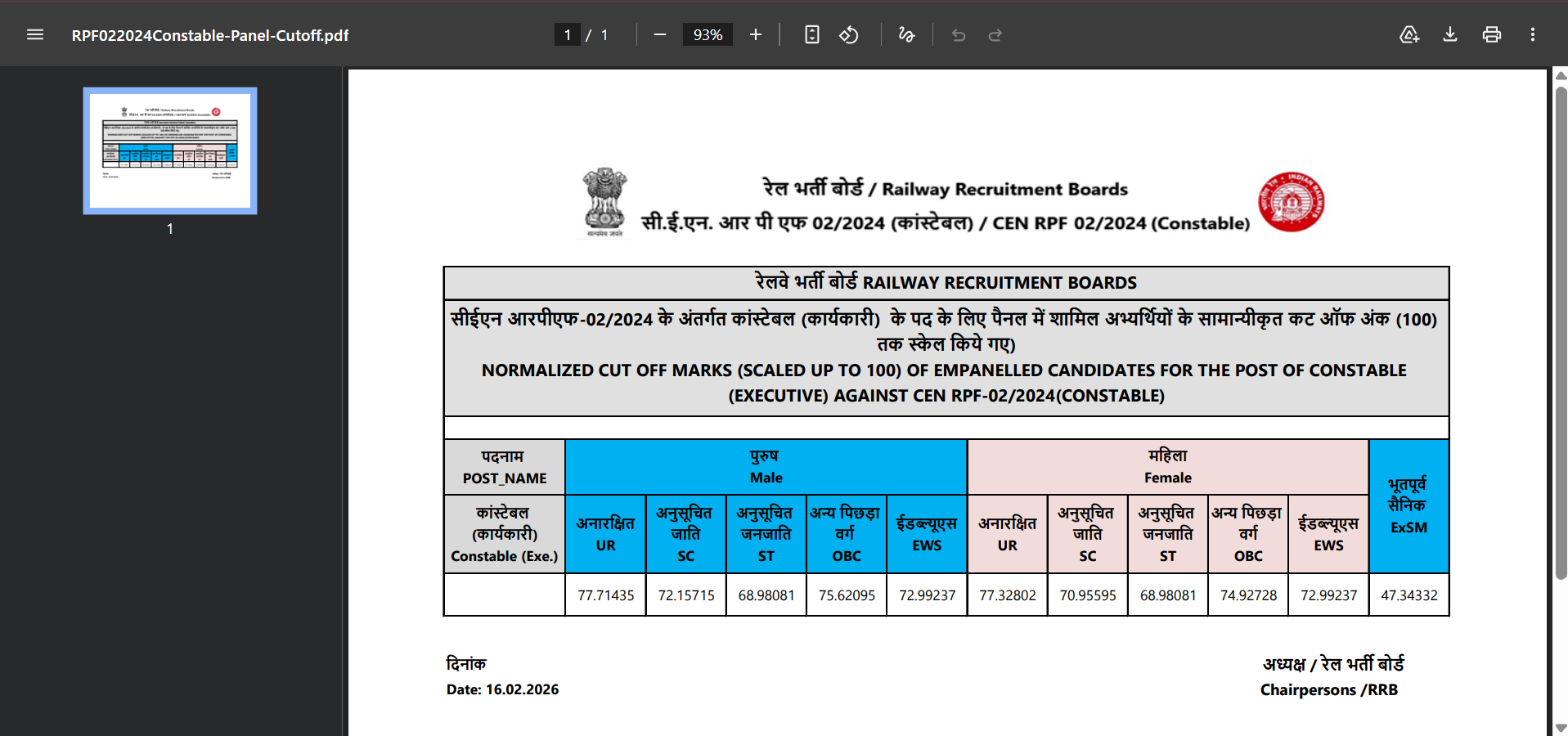- Find the link “RPF Constable Final Result 2026” or “RPF Constable Result PDF.”