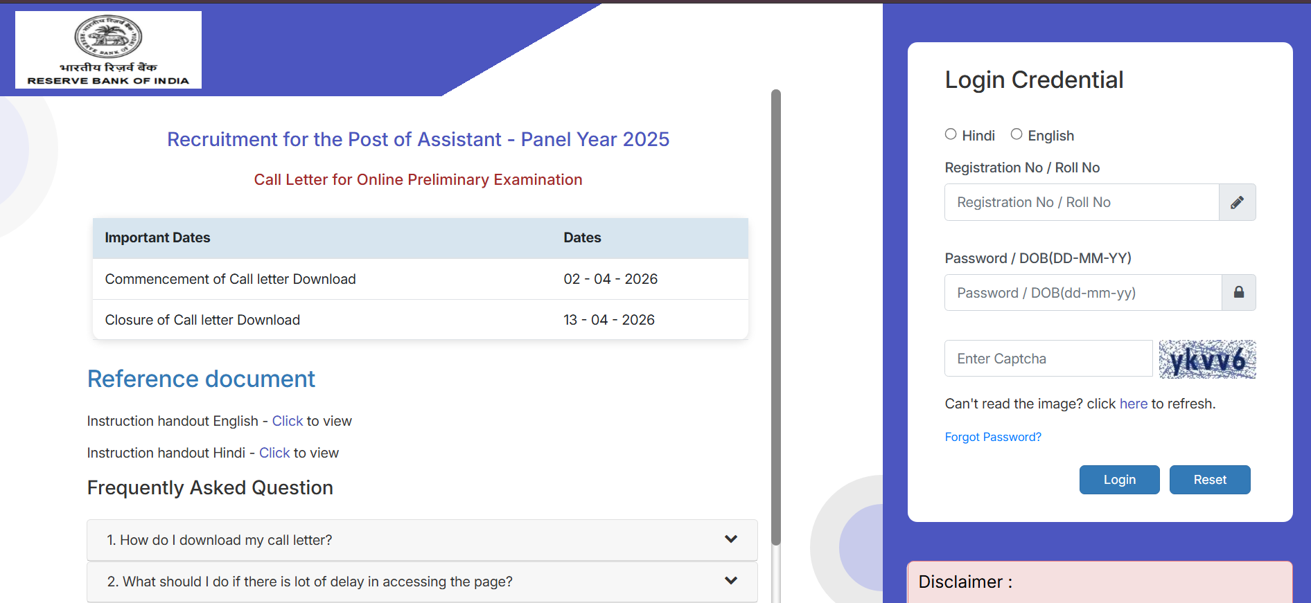 2. Q: From where can I download my RBI Assistant Pre Admit Card 2026?