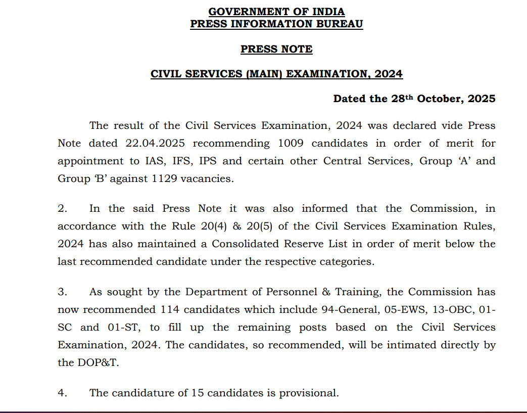 “Civil Services (IAS/IFS) 2024 Reserve List Marks”